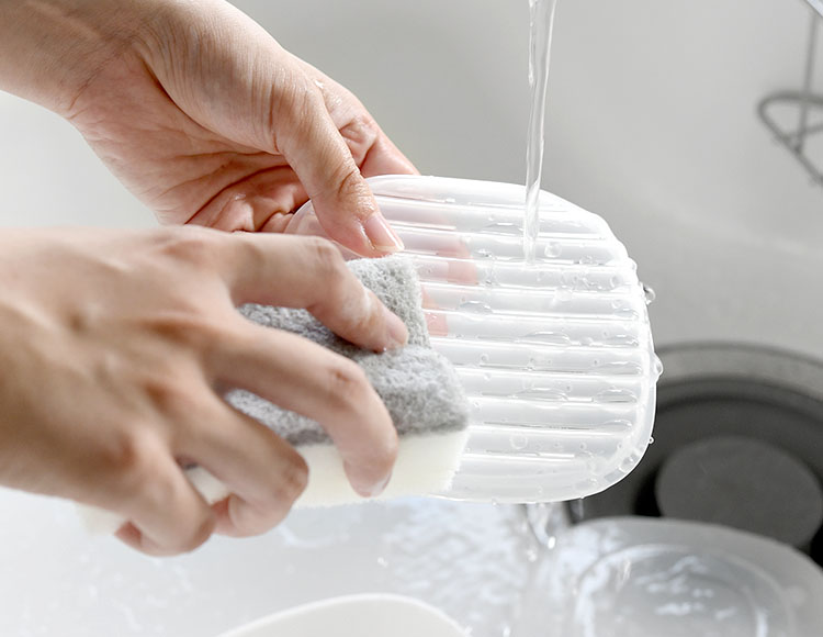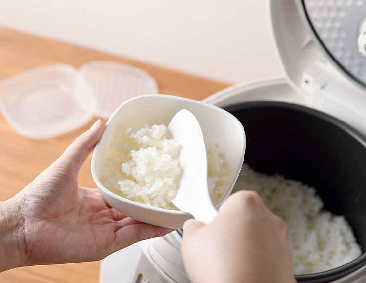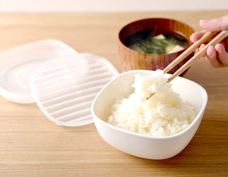 スノコはごはん粒が詰まりにくい構造で、容器内面はツヤ加工になっているため、