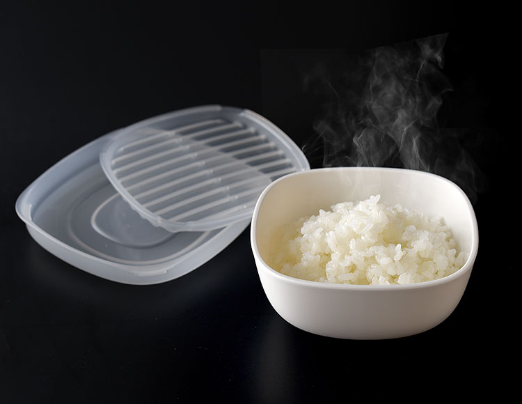 冷凍ごはんが電子レンジで炊きたてのようにふっくら解凍できる冷凍保存容器。