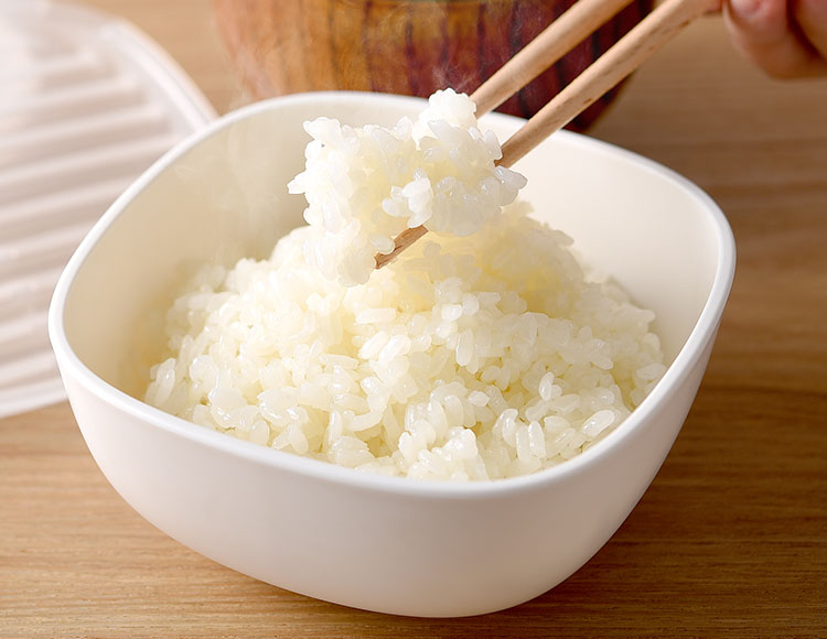スプーン1杯の水を足して解凍することでまるで炊きたてのようなふっくら、もっちりの仕上がりになります。