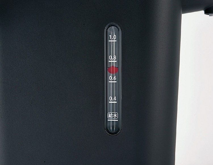 ふたを開けなくてもお湯の残量が外からわかる「赤玉水量計」です。