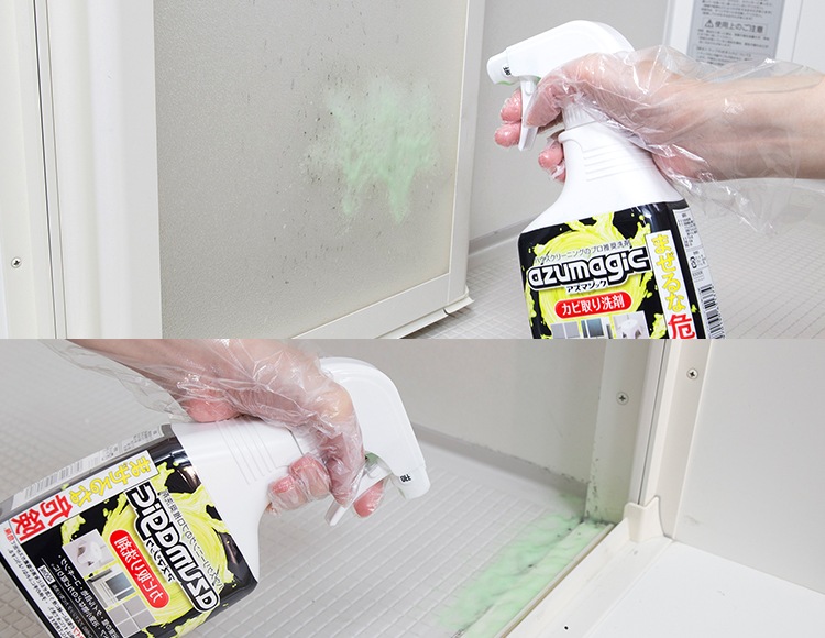 落ちなかった頑固なカビを根こそぎ落とす!根が深いカビにも洗剤が行き渡り、黒いカビも赤いカビも根こそぎ落とします。素材への影響を抑えた配合になっていますので、長時間放置できれば効果がさらにアップ。