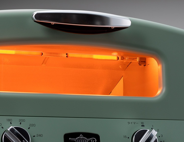 赤熱する温度を3段階に分けて中央部分を消しさらにトースター庫内の形状を改良したことにより、よりムラなく均一に焼き上げます。
