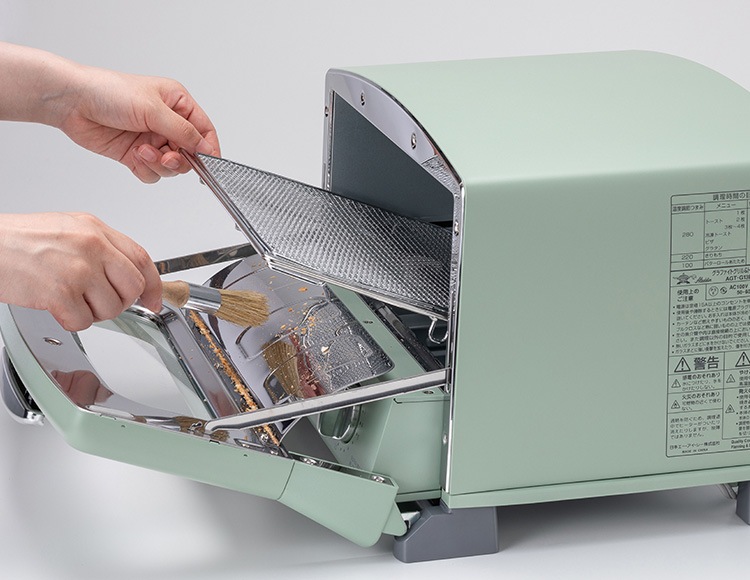 焼き網を持ち上げることができるので、扉周りに残ったパンくずのお掃除がしやすくなりました。