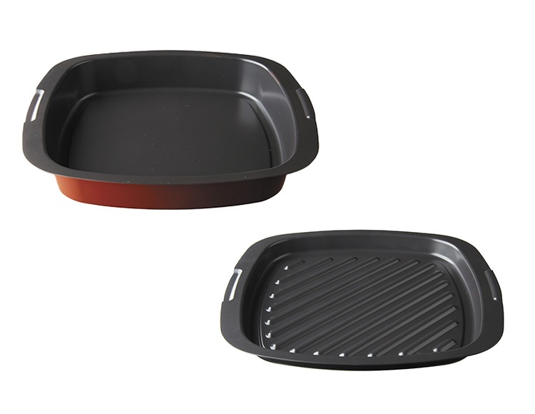 グリルパンはセラミック塗装になり、食材が焦げ付きにくい洗い物も簡単です。
