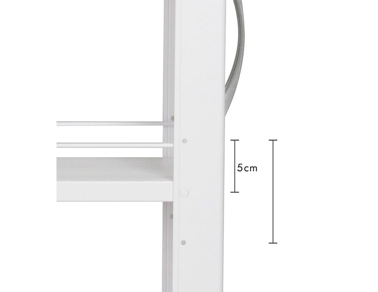 | 規格 | サイズ:(約)幅15.6×奥行55.5×高さ165.4cm 奥行(取っ手含む)57.7cm 重量:(約)7.5kg 耐荷重:棚1枚:(約)8kg、全体:(約)50kg 組立式 転倒防止チェーン付き |