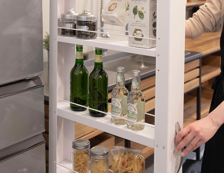 缶詰や調味料、ペットボトル、洗剤など様々なものを一括に収納できるのが特徴です。