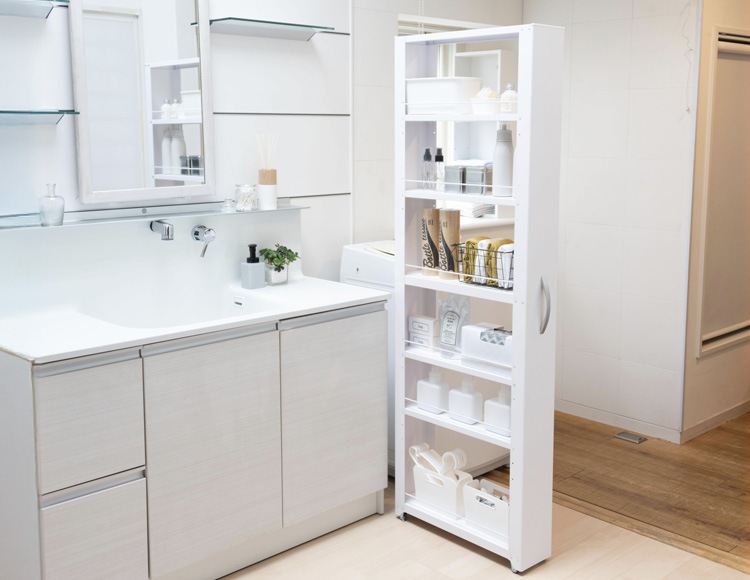 洗面所でお使いであれば、タオルやシャンプーなど、高さのあるものもスッキリ収納できます。