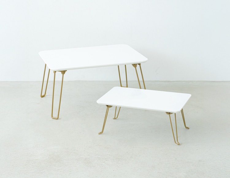 ニュアンスカラーとゴールドを組み合わせた折りたたみテーブルです。