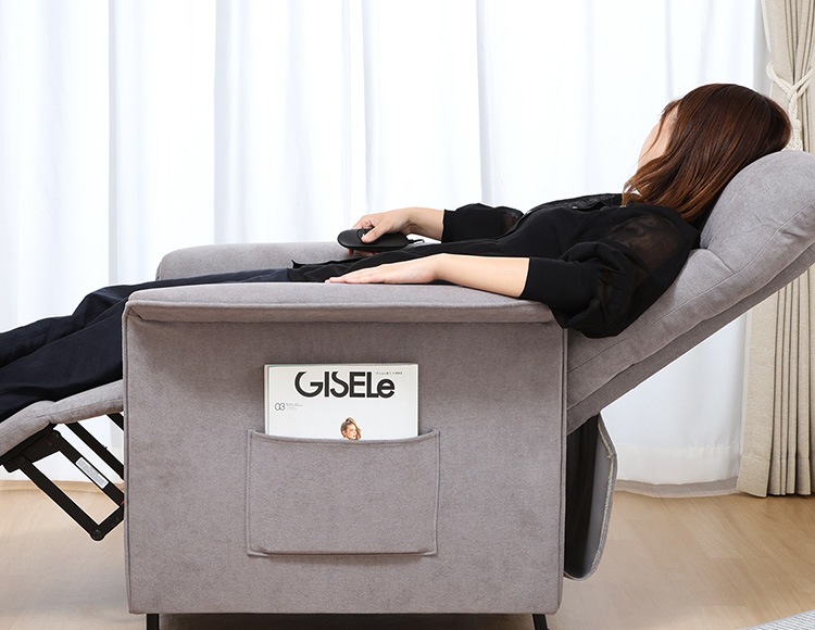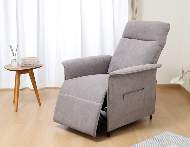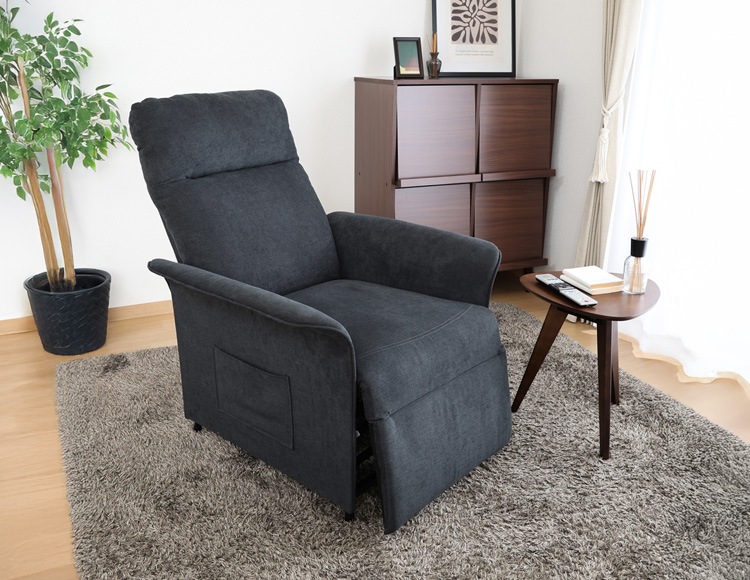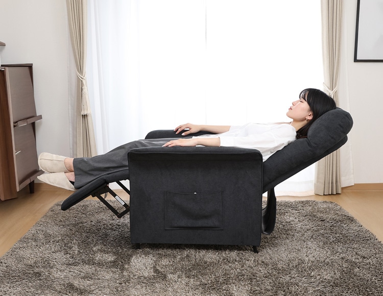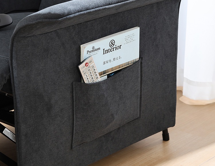 チェアのサイドには大きなポケットがついており、リモコンや雑誌などを収納できます。