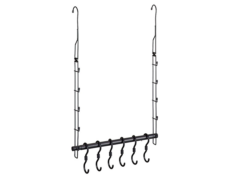 | 規格 | サイズ:(約)幅490・550・610・670・730・790× 奥行65× 高さ745mm ※フックは含まないサイズです。 機能:幅調整6段階、高さ調整5段階、フック付き 付属品:フック6個付き 重量:(約)727g 耐荷重:(約)15kg(フック1つあたり3kg) |