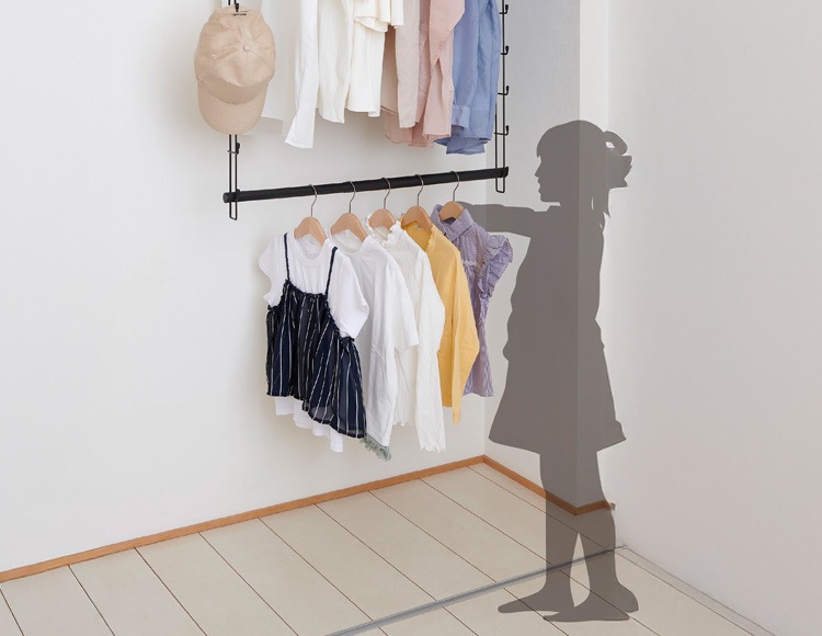 お子様でも手の届く高さで衣類を収納することができます。