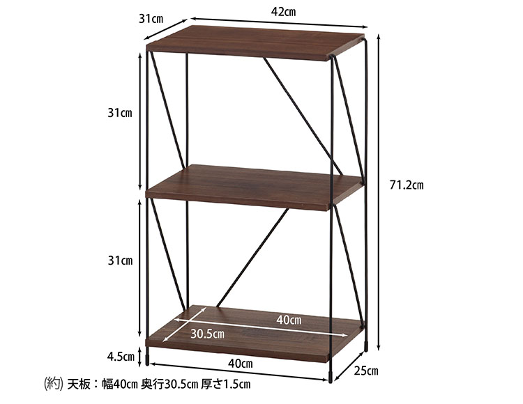 棚板約40cm幅でちょっとしたスペースにも設置しやすい。