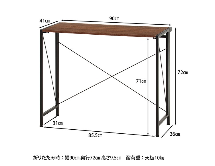 | 規格 | サイズ:全体(約)幅90×奥行41×高さ72cm 折りたたみ時:(約)幅90×奥行72×高さ9.5cm 耐荷重(天板):(約)10kg 重量:(約)7.6kg |