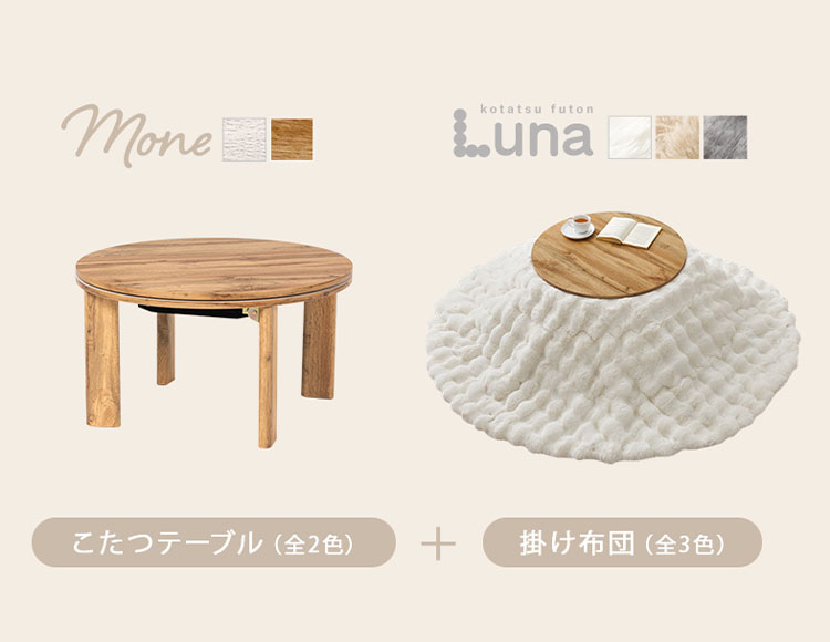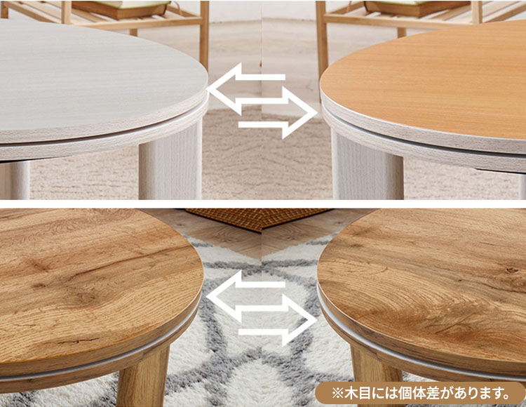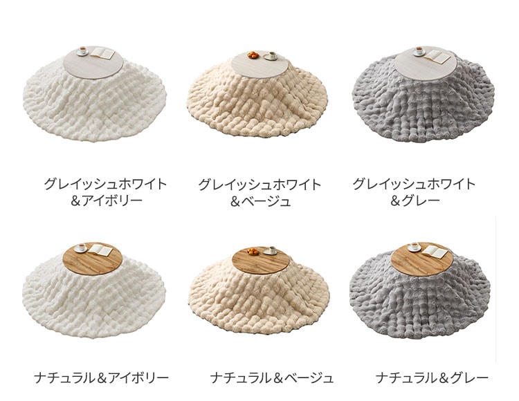 | 材質 | [こたつ]グレイッシュホワイト:天板、脚部:合成樹脂化粧繊維板(塩化ビニル)、ナチュラル:プリント紙化粧繊維板(3Dペーパー) [掛け布団]ポリエステル100% |