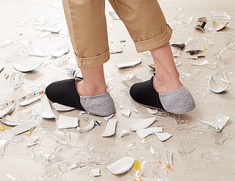 ガラス片や釘の踏み抜きから足を守る防災スリッパ