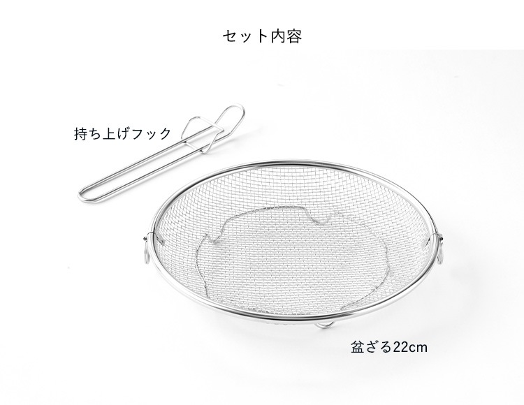 持ち上げフックと盆ざる22cmがセットになった商品です。