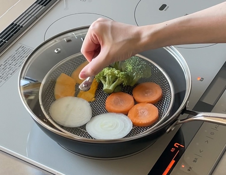 脚高設計のため、蒸し料理の際も食材が水に浸りにくいです。