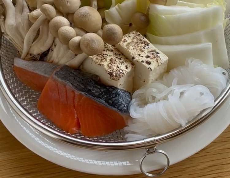 持ち上げフックを使えば、食材に触れずにざるごと移動できるので便利です。