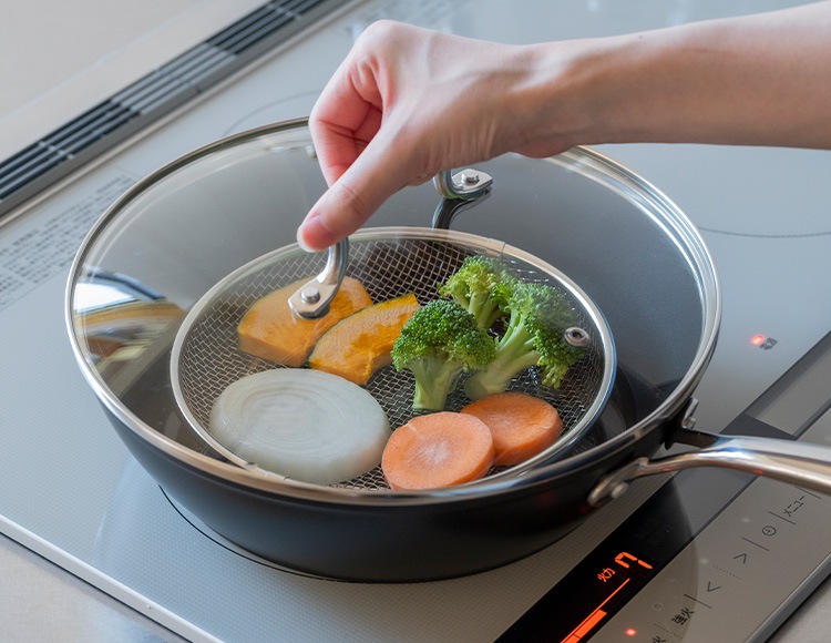 脚高設計のため、蒸し料理の際も食材が水に浸りにくいです。