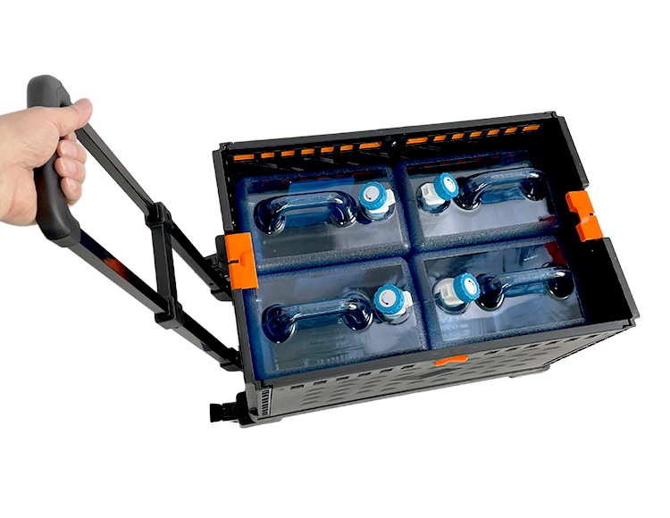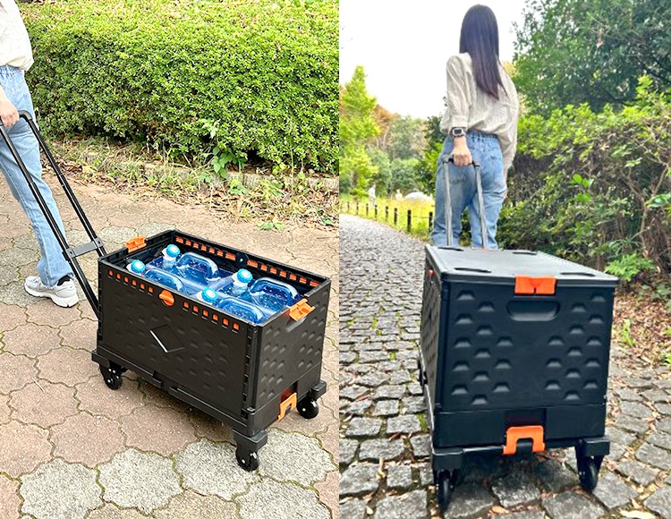 年配の方や女性でも楽に32Lの水(8L×4)を軽々運べるキャリーカートです。