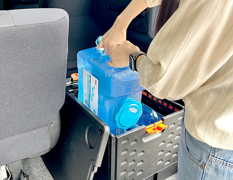 女性や年配の方でも給水車から自宅まで32Lの大量な水をラクに運べます。