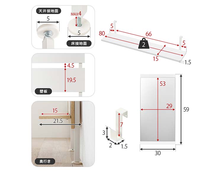 | サイズ(約) | 幅80×奥行21.5×高さ200~265cm |