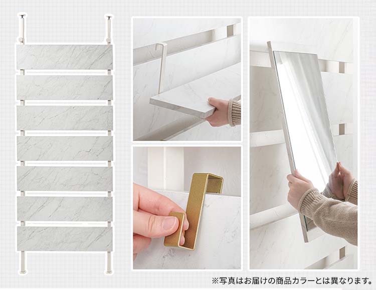 ミラー付き突っ張り式ウォールラック 幅80cmタイプ