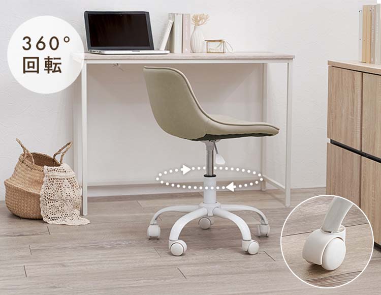 回転機能やキャスター付きで、移動や方向転換もラク。
