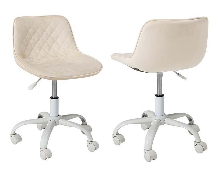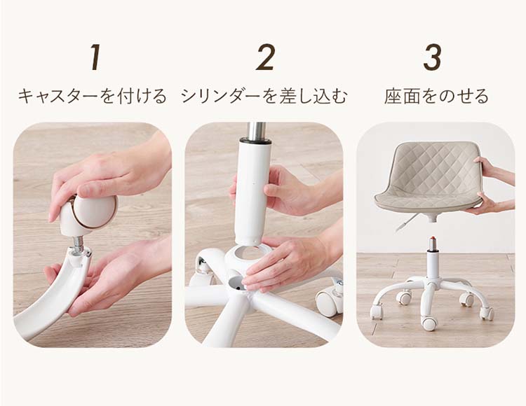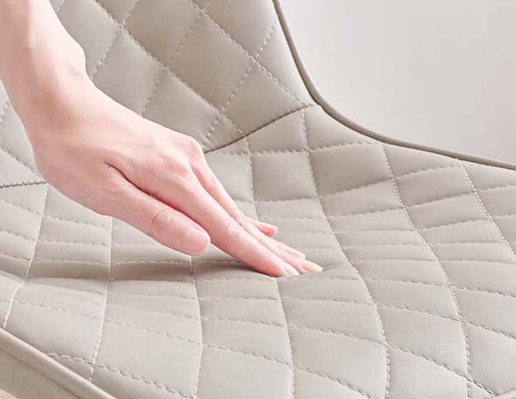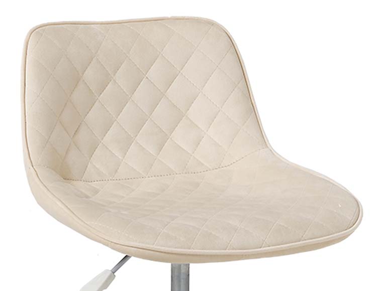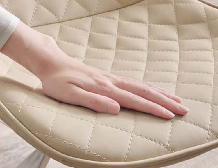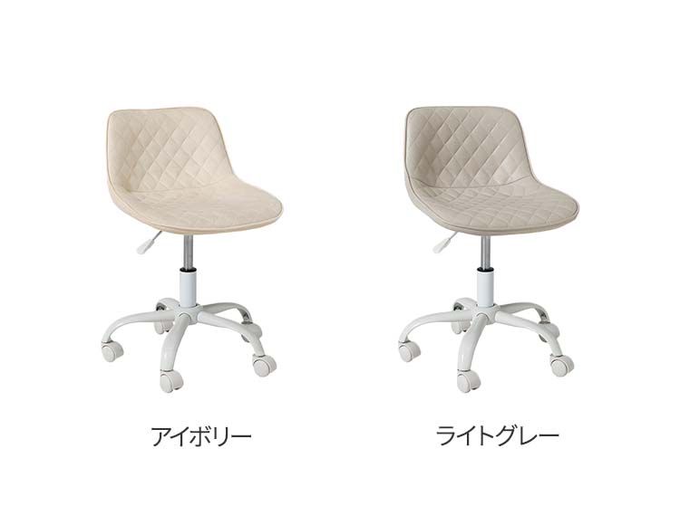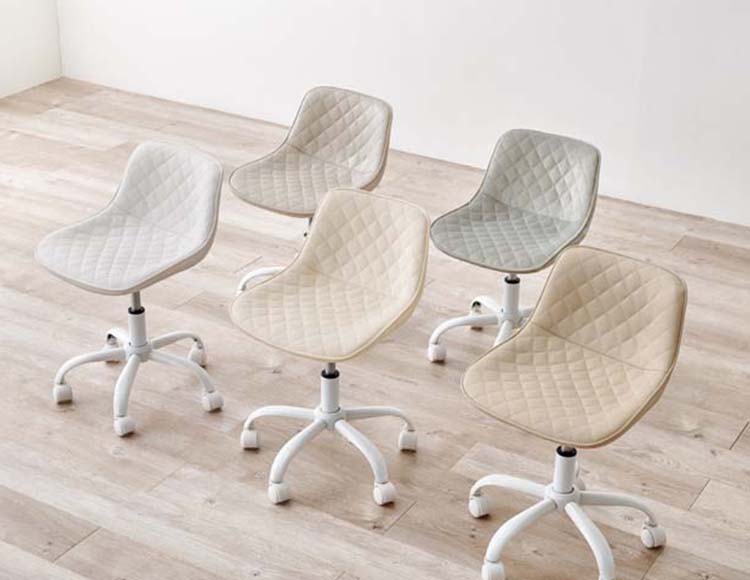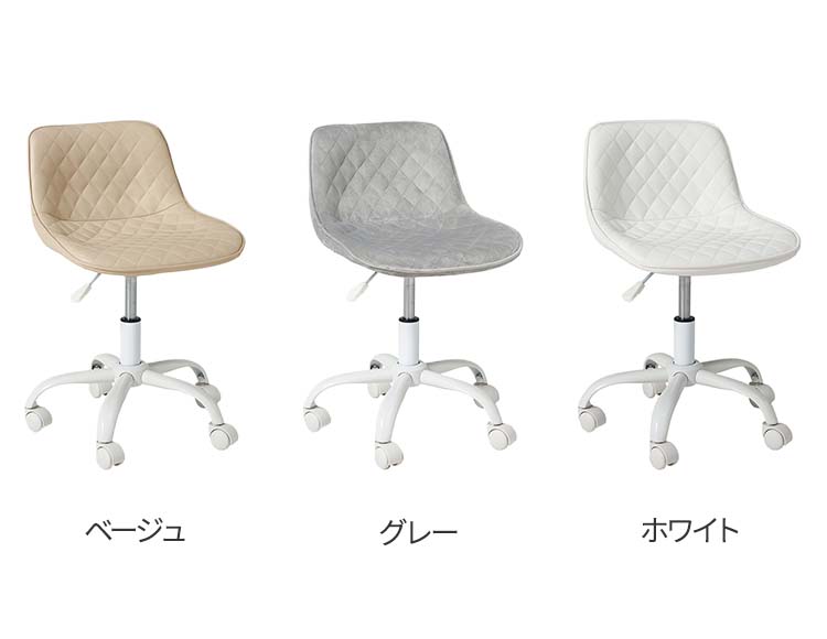 かわいいホワイトの足元に、シャープな小粒のダイヤ模様の座面が洗練された雰囲気のチェア。