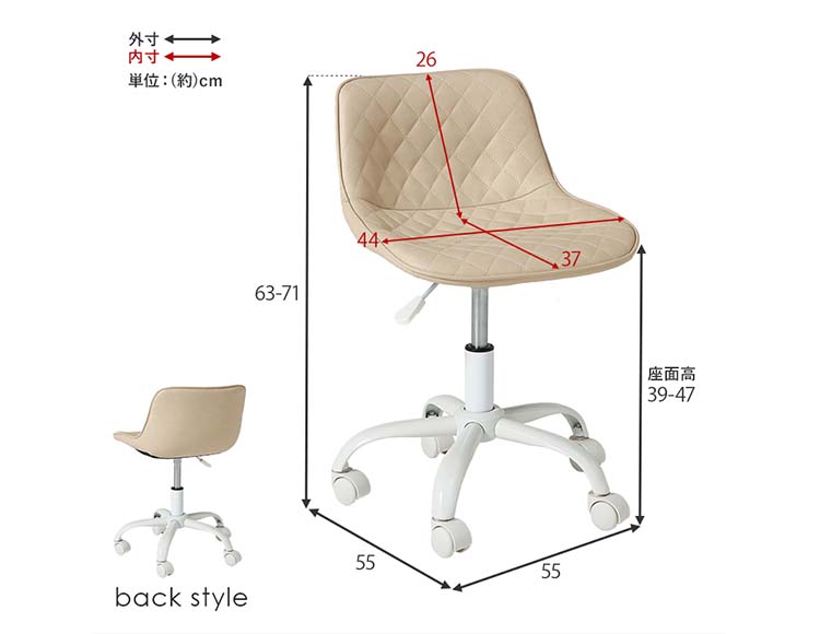 | サイズ(約) | 幅55×奥行55×高さ63~71×座面高39~47cm |