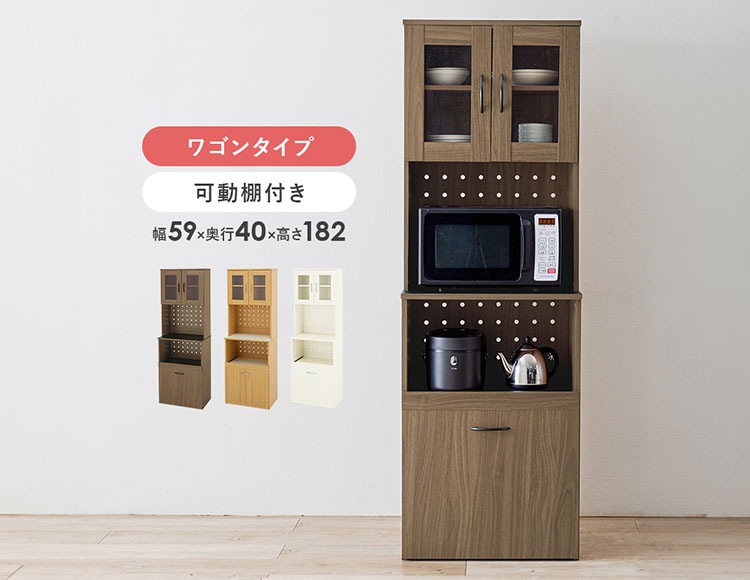 幅約59cmのスリムな食器棚