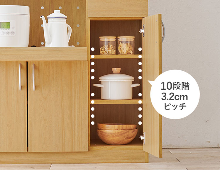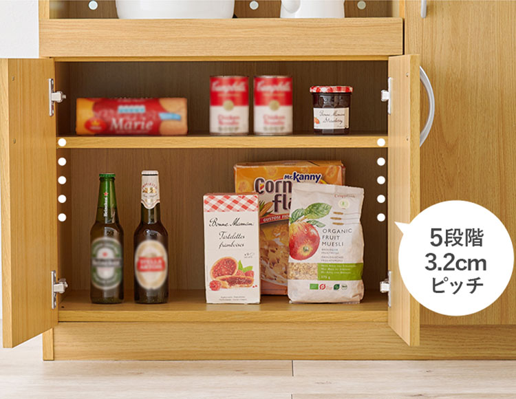 収納するものの高さに合わせて調節していただけます。
