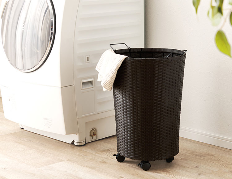 生活感の出やすいランドリーもラタン調で美しく爽やかな空間に。