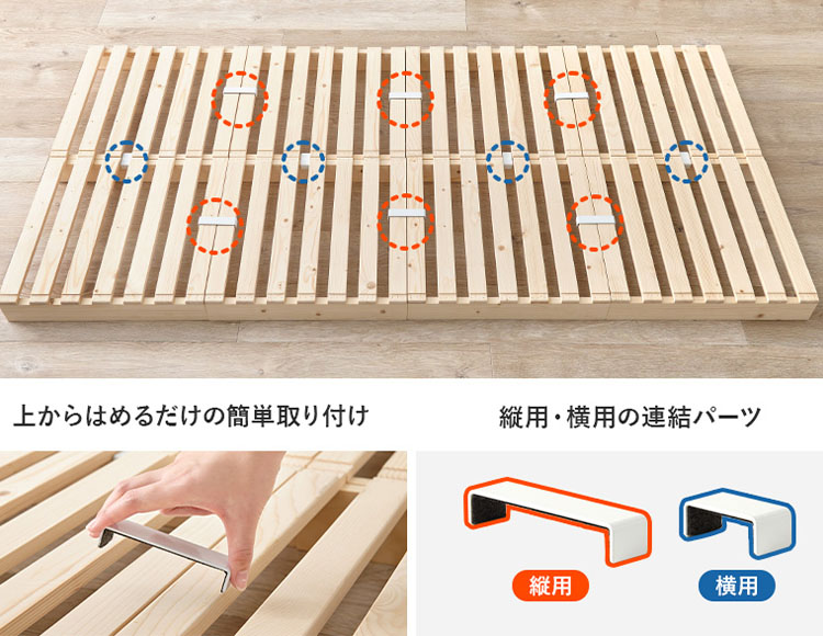 縦用・横用の連結パーツで両方向しっかり固定できるので