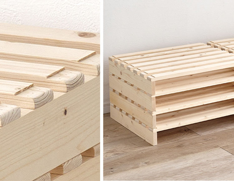 すのこの隙間から空気が通り、湿気やカビの発生を防ぎます。