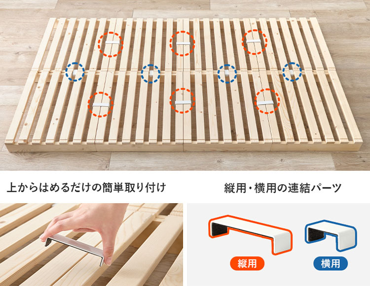 縦用・横用の連結パーツで両方向しっかり固定できるので