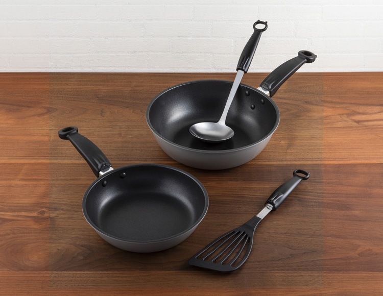 | 耐熱・耐冷温度 | フライパン(取っ手部分):耐熱温度150度 炒め鍋(取っ手部分):耐熱温度150度 お玉(柄部):耐熱温度110度 ターナー:(柄)耐熱温度110度、(先部)耐熱温度200度 |