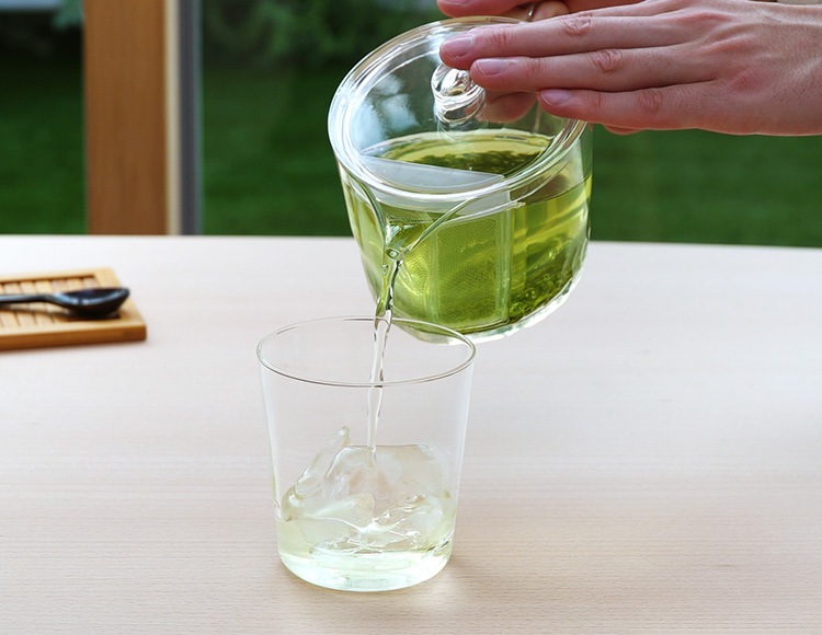 氷を入れたグラスにお茶を注いで急冷茶にも。