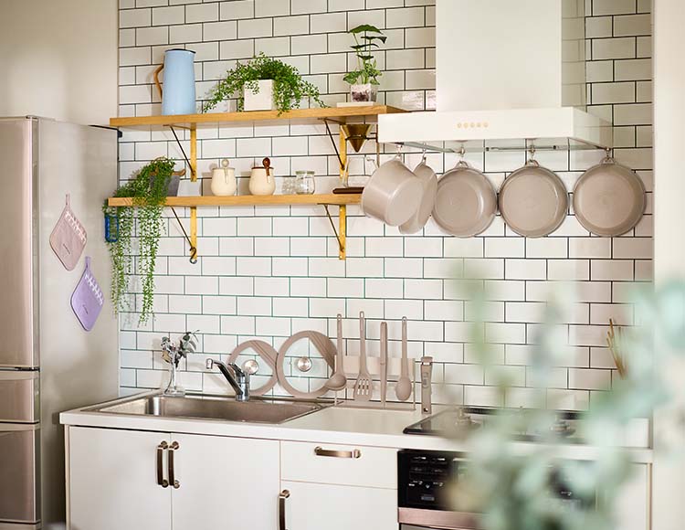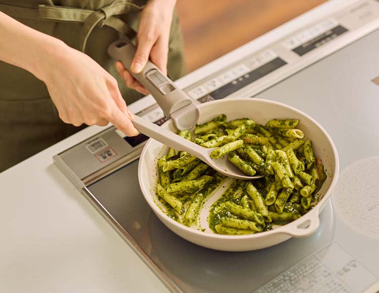 やわらかく上品なグレージュカラーでキッチン用品をそろえると、毎日の料理時間がぐっとおしゃれに変わります。