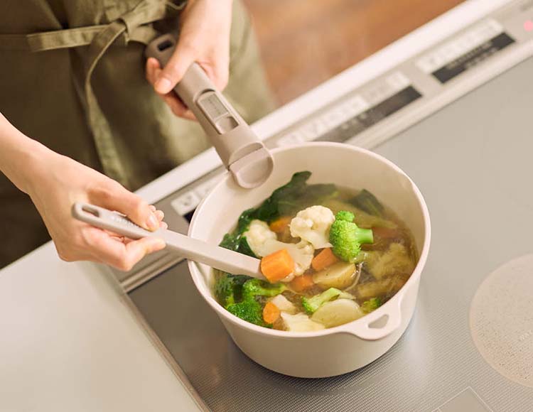 本体にはSONOMAキッチンツールがくっつく仕様。調理中でもSONOMAキッチンツールをハンドルにつけた状態で調理が出来ます。