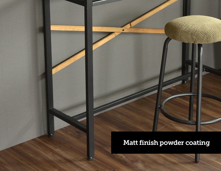 パイプ部はマットな手触りのエポキシ粉体塗装で仕上げられており、無骨で存在感があります。
