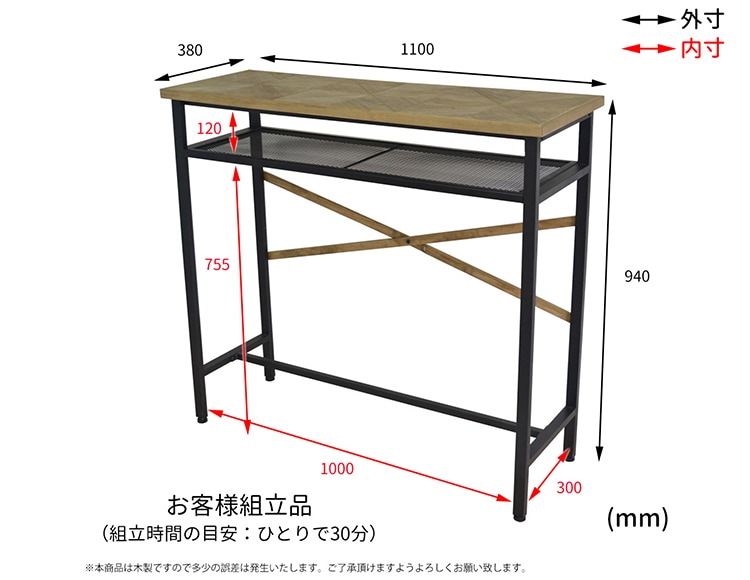 | サイズ(約) | 幅1100×奥行380×高さ940mm |