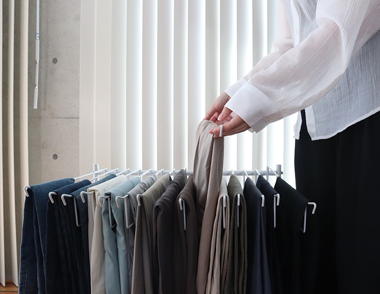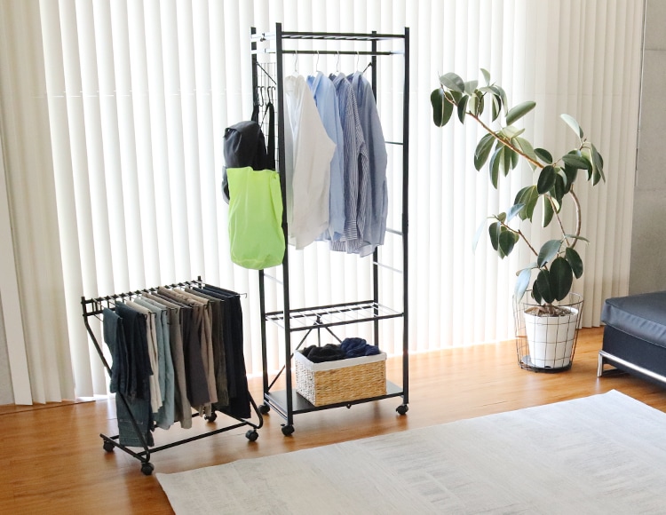 畳まず掛けるだけ。選びやすく取り出しやすい収納アイテムです。