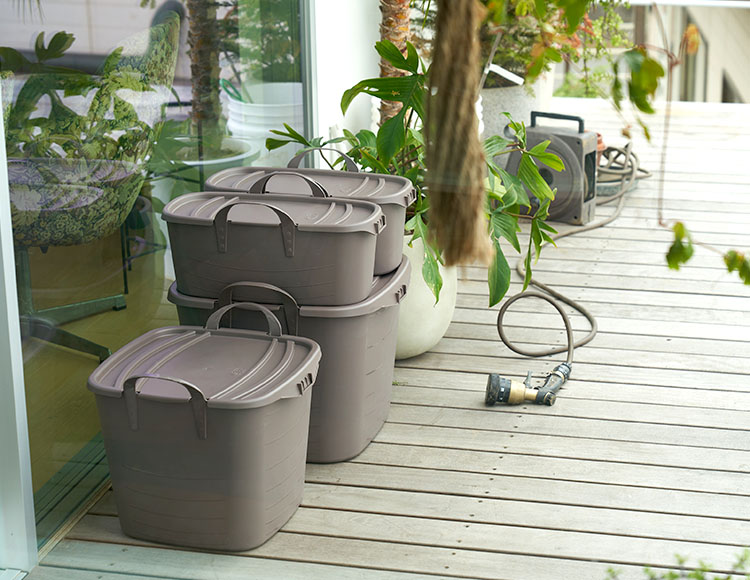 四角いbaquetがつくるヨコ方向への空間を、専用フタのonbaquet(オンバケット)をつかってタテの方向へも。
