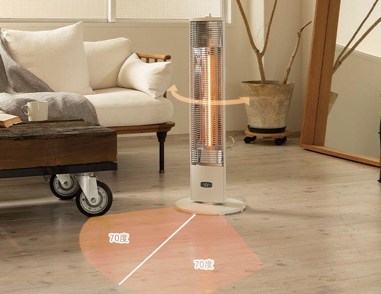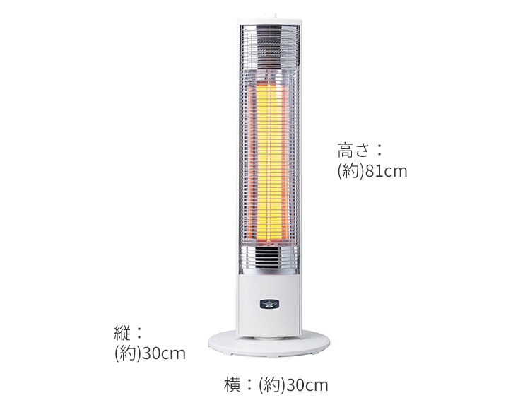 | 機能 | 電力切替:2段 (900W、450W) 定格:AC100V 900W 50-60Hz 発熱体:グラファイトヒーター 首振り機能:自動首振り(約)70℃(モーター)、手動首振り(約)60℃ 電源コード:(約)1.5m 安全装置:ボール式転倒OFFスイッチ |