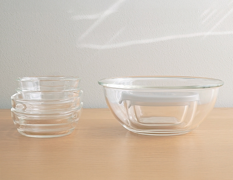 ボウルの中でこねるのに使いやすい形状です。また、電子レンジ調理にも使えるシンプルな形状で食器としても活躍します。