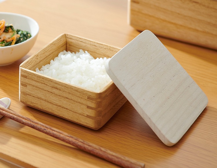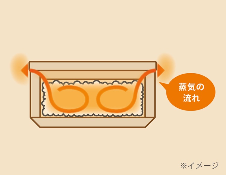 電子レンジで温めると桐が吸収していた水分が蒸気となって放出・充満することで、中のご飯を満遍なく温めて、同時に余分な熱と蒸気がフタと本体のスキマから適度に放出されるので、ふっくらとした炊きたてのような状態に仕上がります。