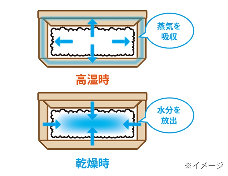 炊きたてのご飯から出た余分な蒸気を吸収するとともに、乾燥していくと水分を放出するので、ご飯がベタつかず、適度な水分量を保ってくれるのでいつでも美味しくいただけます。