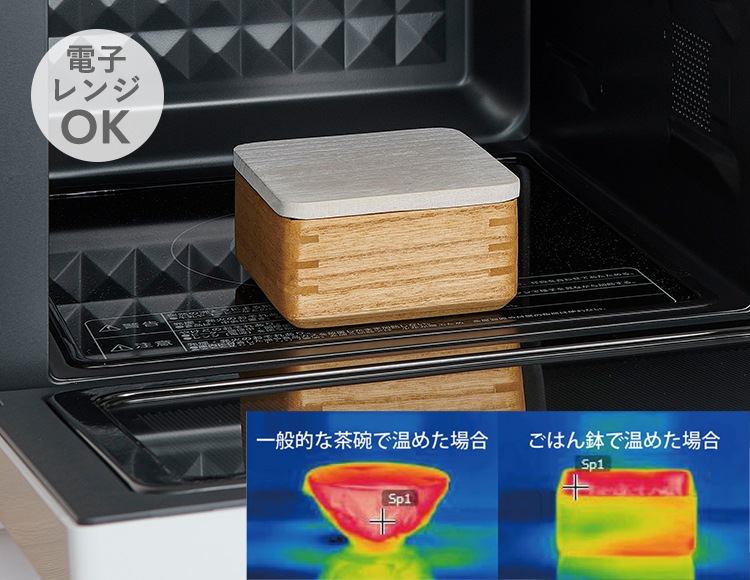 桐は熱伝導率が低いので、レンジで温めても本体が熱くなりにくくすぐに取り出せます。