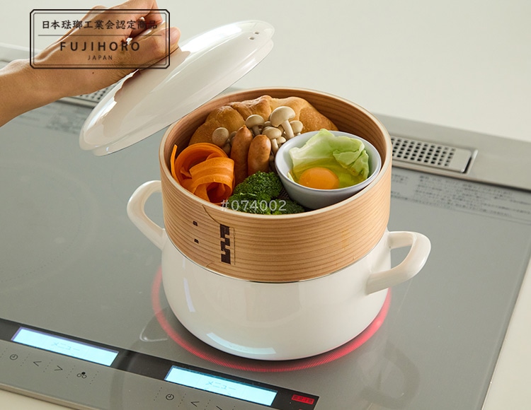 蒸気が食材をやさしく包み込むように、ふんわりと蒸し上げるせいろ付きホーロー鍋です。